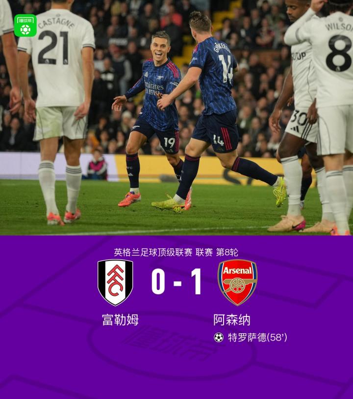 剑南春|阿森纳1-0客胜富勒姆,加布里埃尔助攻特罗萨德制胜